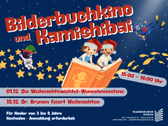 Für den Dezember haben wir uns ganz besondere Vorlesegeschichten herausgesucht: Mit der Weihnachtswichtel-Wunschmaschine und Dr. Brumm kommt weihnachtliche Stimmung in der Kinderbücherei auf!