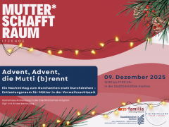 Um Müttern in der Vorweihnachtszeit eine Auszeit zu bieten und über eine faire Aufgabenverteilung zu sprechen, laden Laura Spelz, Gleichstellungsbeauftragte der Stadt Itzehoe, und Jenny Westenberger von der pro familia-Beratungsstelle Itzehoe am 9. Dezember von 15:30 bis 17:00 Uhr in die Stadtbibliothek Itzehoe ein.