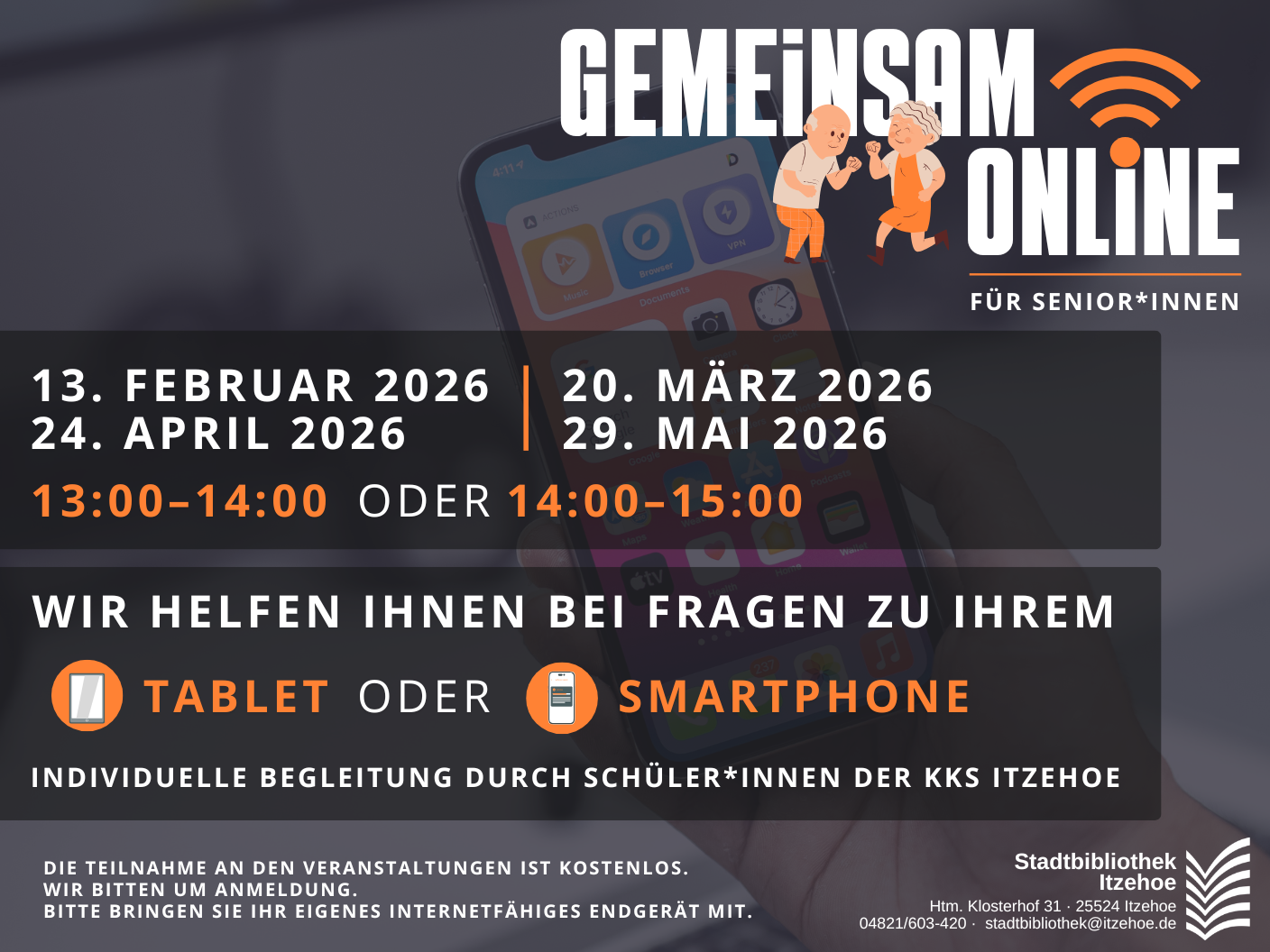 Wir laden Sie herzlich ein, dieses Angebot zu nutzen und freuen uns auf Ihre Teilnahme! Bitte informieren Sie auch gerne Freunde, Bekannte, Verwandte oder Nachbarn, die Unterstützung im Umgang mit digitalen Geräten benötigen könnten.